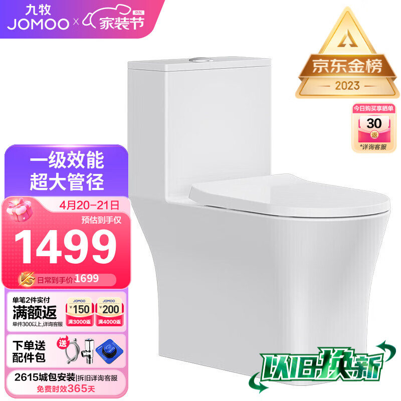 九牧(JOMOO) 11322-2-2/31K-1抗菌一级水效大冲力马桶虹吸式加坐便器305坑距价格:1649.00元!