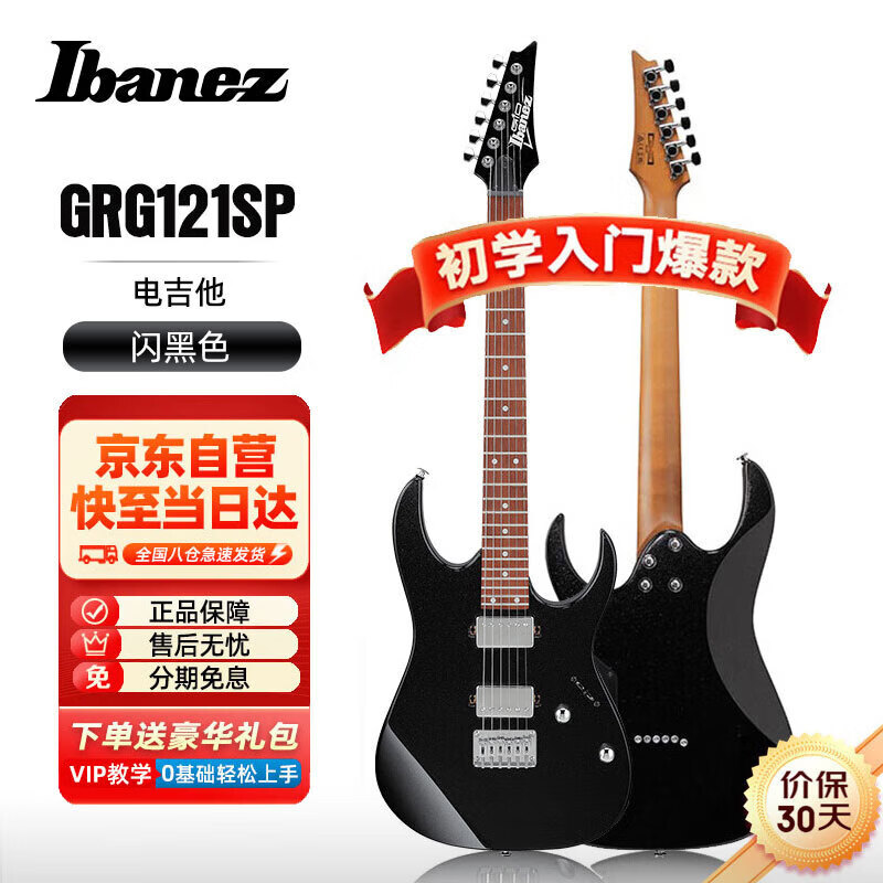 Ibanez依班娜电吉他GRG121SP-BKN 闪黑色 初学者入门新手男女吉他套装价格:2630.00元!
