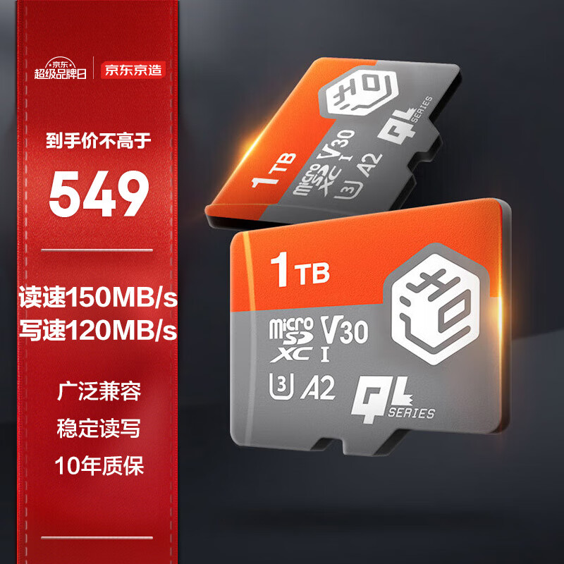 京东京造1TB麒麟系列TF(microSD)存储卡U3 C10 A2 V30 手机平板游戏机内存卡价格:549.00元!