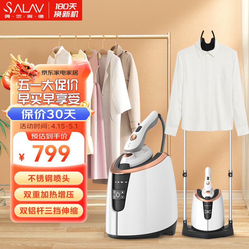 贝尔莱德(SALAV)挂烫机家商两用双铝杆手持熨烫机大功率蒸汽电熨斗挂烫机服装店ST220(白色)价格:799.00元!