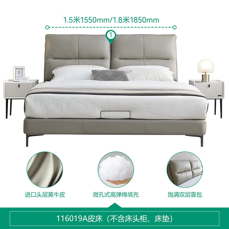 全友家居 现代简约高脚真皮艺软包床主卧室双人大床1.5x2米家具116019价格:1499.00元!