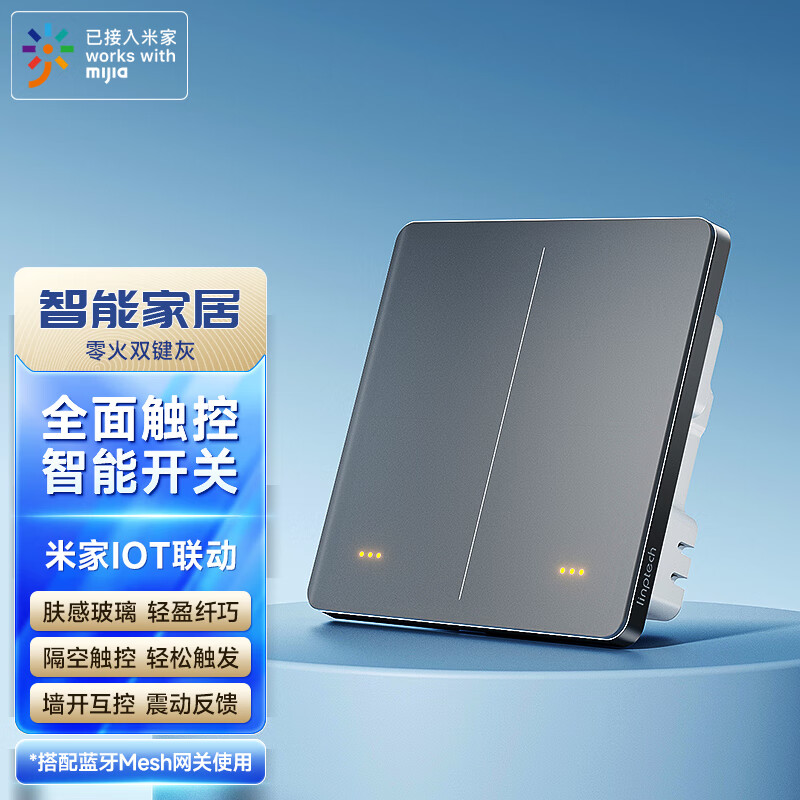 领普科技小米IOT联动触控智能开关QT1 AG肤感超薄玻璃全屏触控带震动反馈触摸开关 零火双键灰价格:159.00元!
