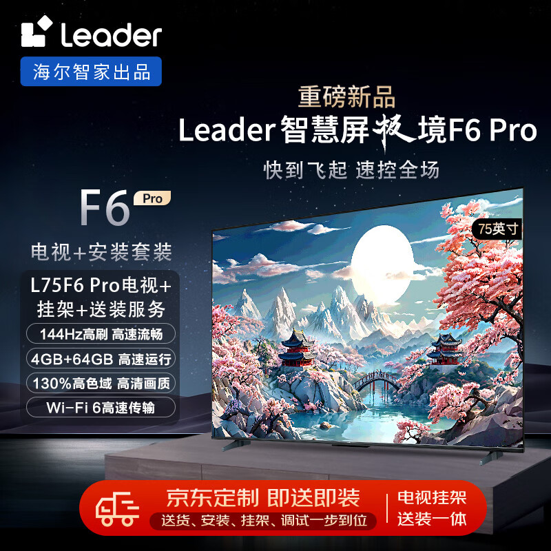 Leader海尔智家出品L75F6 Pro75英寸4K超高清电视144Hz高刷4+64G平板液晶智慧屏+安装服务【送装一体】价格:3898.00元!