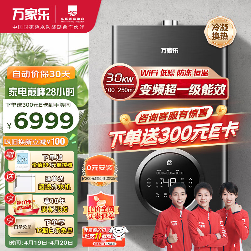 万家乐壁挂炉 洗浴采暖两用 燃气热水器 暖气片地暖 变频一级能效 冷凝换热30KW天然气R6【100-250平】价格:7299.00元!