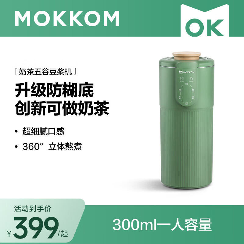 mokkom磨客豆浆机迷你奶茶机家用便携小型容量多功能养生壶杯轻音榨汁料理机米糊辅食早餐机MK582草绿价格:399.00元!