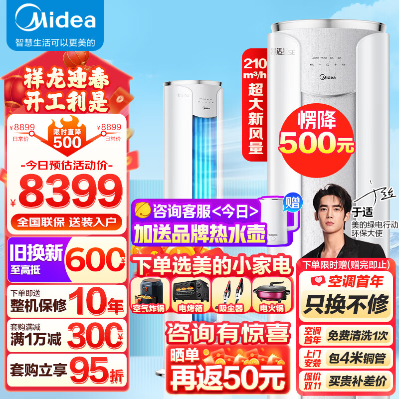 美的(Midea)舒适星SE 大2匹 新一级变频冷暖 换新风无风感 家用圆柱立式空调柜机 KFR-51LW/K1-1A 以旧换新价格:8399.00元!