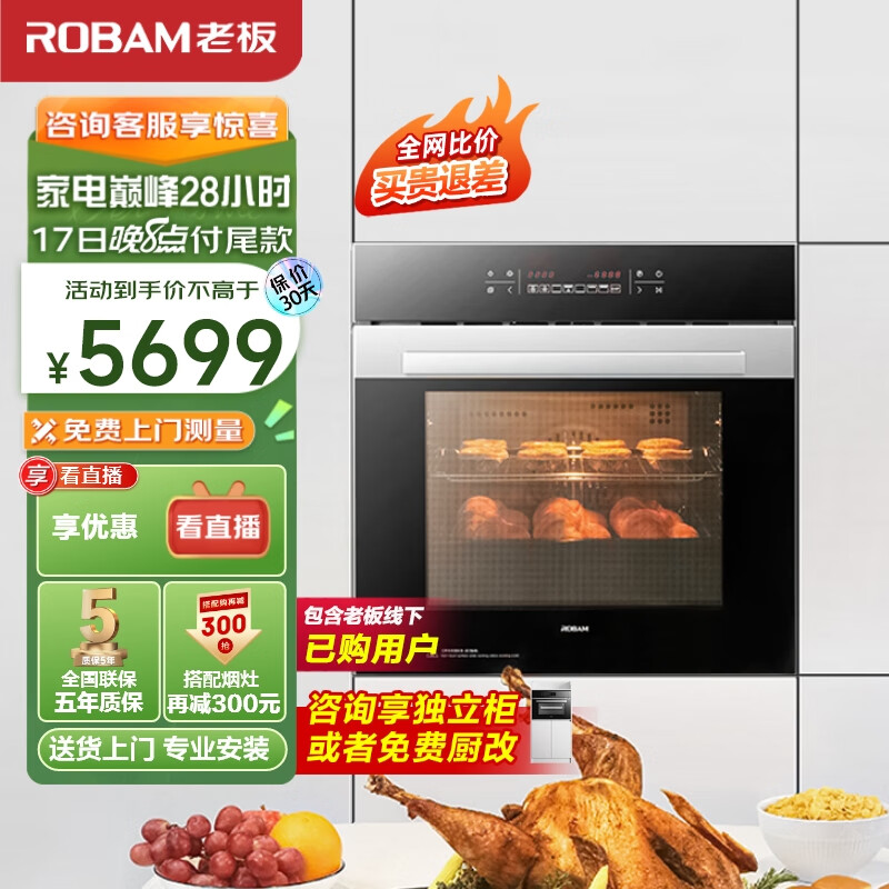 老板(Robam)R075 嵌入式电烤箱 家用60L大容量 内嵌式多功能烘焙烤箱价格:5698.00元!