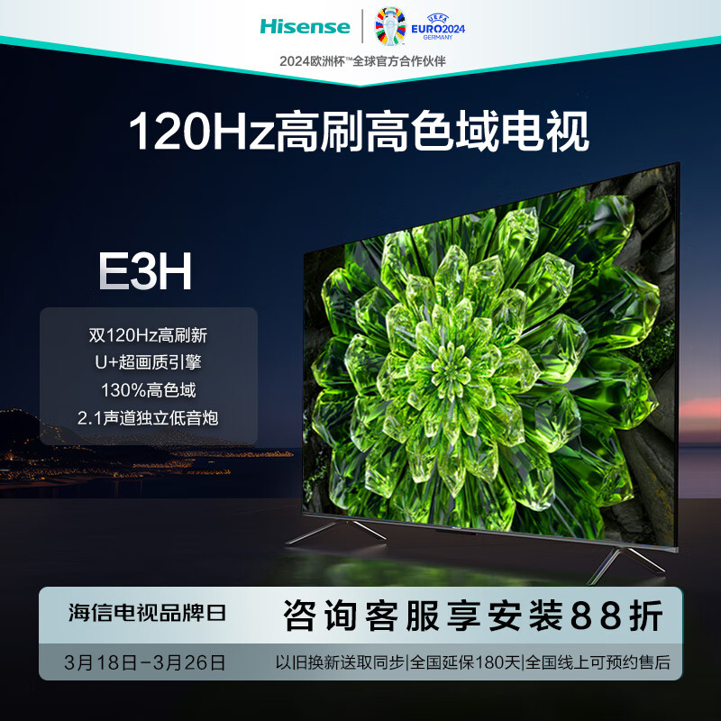 海信电视85E3H 85英寸 120Hz高刷新 U+超画质引擎 130%高色域 2.1声道独立低音炮电视机 85英寸价格:5599.00元!