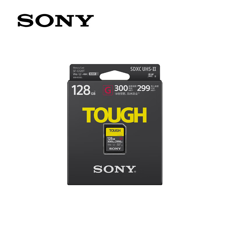 索尼(SONY)128GB SD存储卡 SF-G128T/T1 SF-G系列 TOUGH规格三防卡 读取300MB/S写入299MB/S 相机内存卡价格:2099.00元!