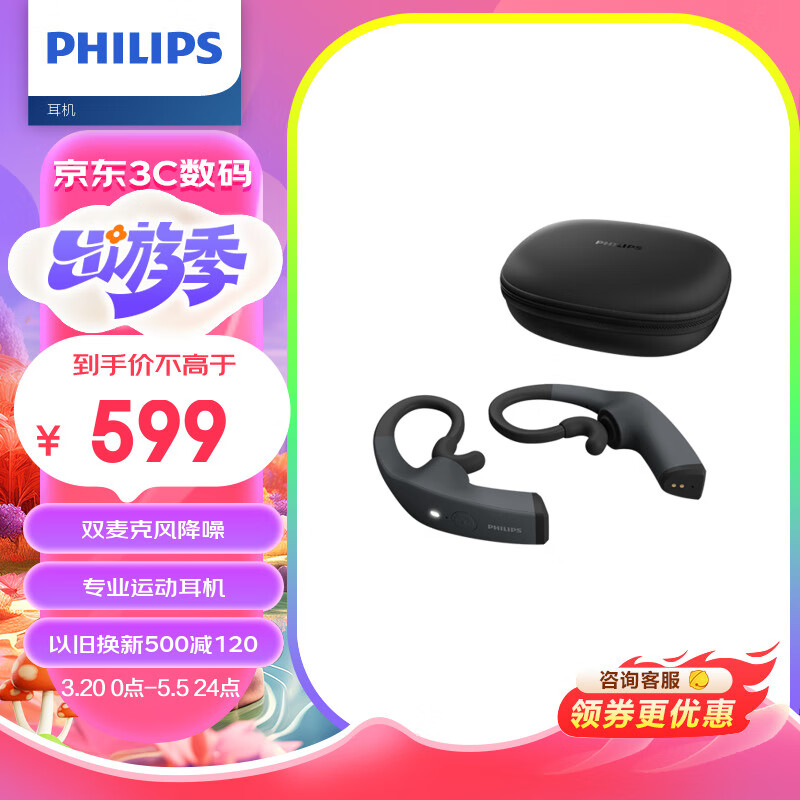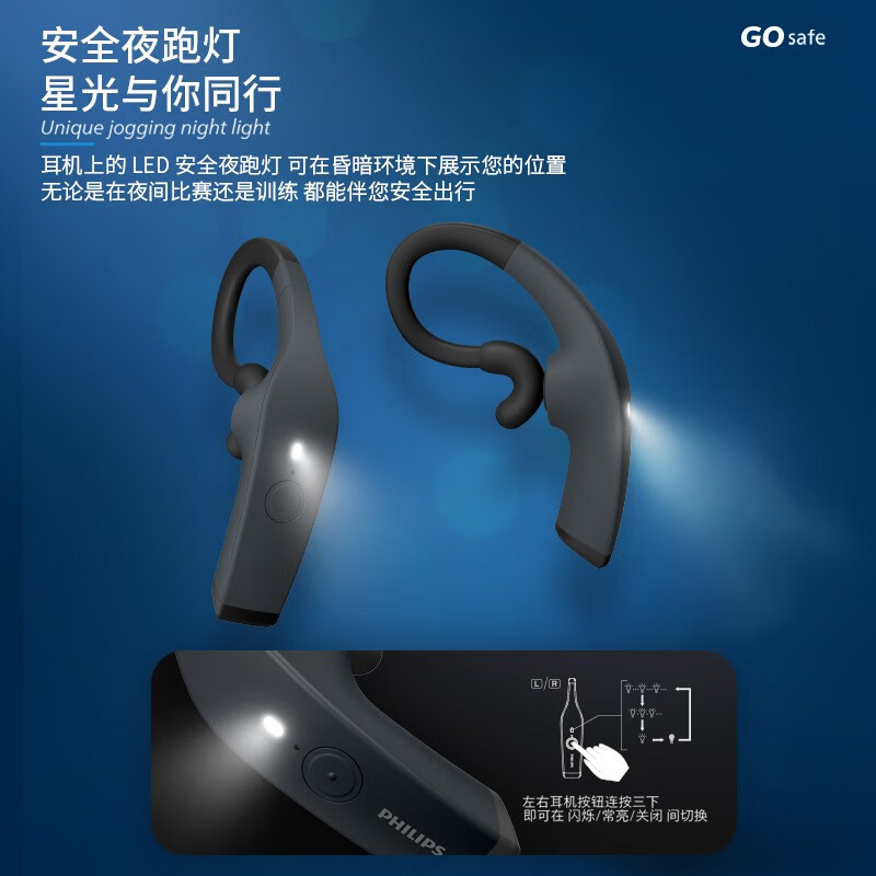 飞利浦(PHILIPS)骨传导蓝牙耳机运动无线耳机跑步骑行耳机 耳挂式 夜跑灯TAA8606BK黑色价格:599.00元!