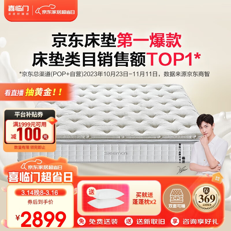 喜临门床垫 2cm高纯乳胶独袋弹簧床垫 3D黄麻床垫 白骑士plus 2x2.2米价格:2999.00元!