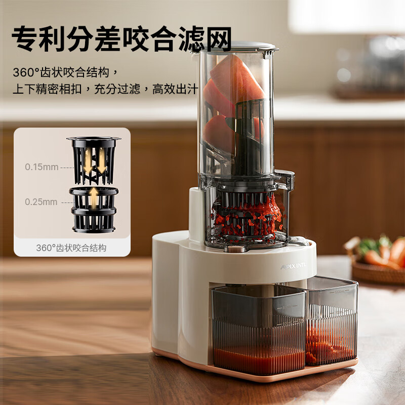 APIXINTL日本 安本素 原汁机汁渣分离家用低速便携水果蔬菜多功能全自动果汁机可商用电动榨汁杯 米白色价格:999.00元!