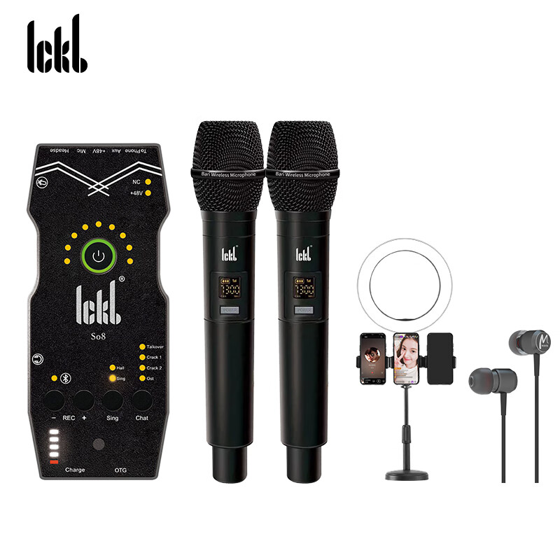 Ickb so8声卡巴里无线麦克风声卡套装手机电脑抖音主播唱歌k歌录音直播设备全套快手话筒一拖二价格:1888.00元!