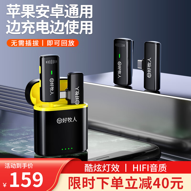 好牧人 领夹式无线麦克风K歌直播声卡设备全套小蜜蜂收音麦一拖二户外专业降噪采访拍摄录音手机蓝牙话筒 单人版丨一拖一【苹果/安卓通用】无需插拔+实时回听价格:199.00元!