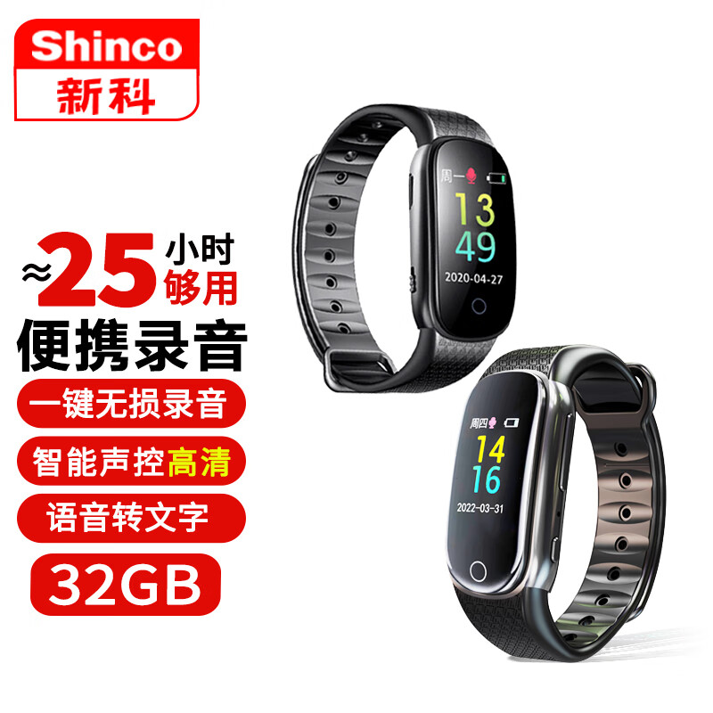 新科(Shinco)录音笔V-28 32G专业录音手环 高清彩屏录音器 智能声控录音手表 运动计步录音设备价格:259.00元!