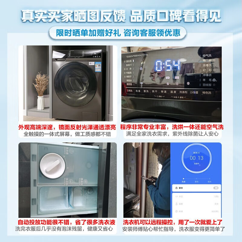 1、免费配送安装,可连手机智能洗衣,声音很小,洗衣干净