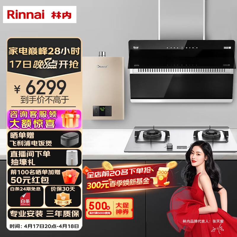林内(Rinnai)油烟机燃气灶热水器套装 22立方 大吸力智能定时烟灶三件套NM09J+2E08MT+13QC05 以旧换新价格:6299.00元!