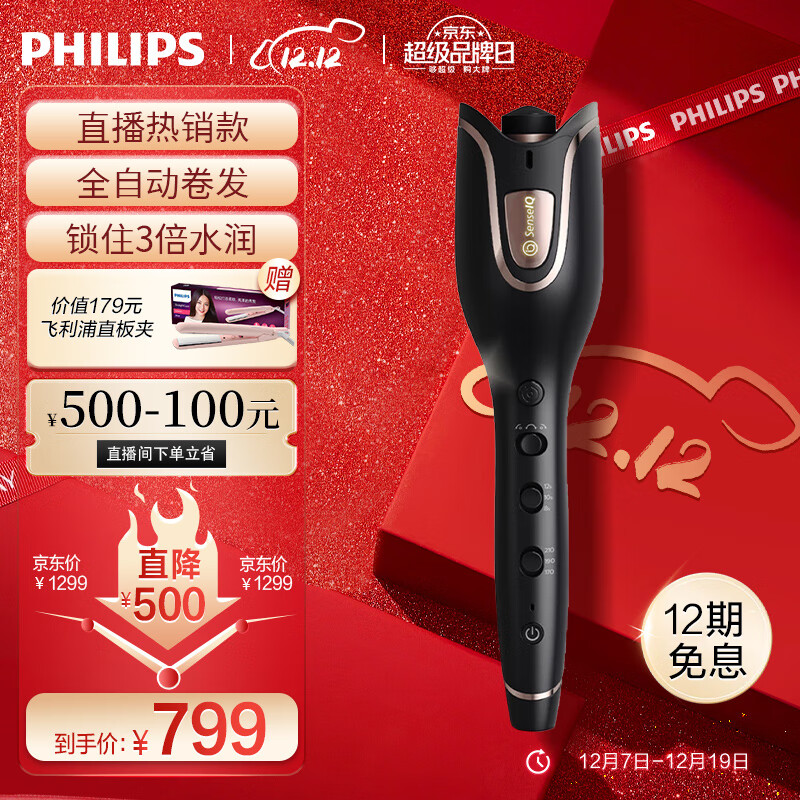飞利浦(PHILIPS)全自动电卷发棒 升级款?SenseIQ技术 防烫造型 25mm BHB882/05 黑色价格:919.00元!