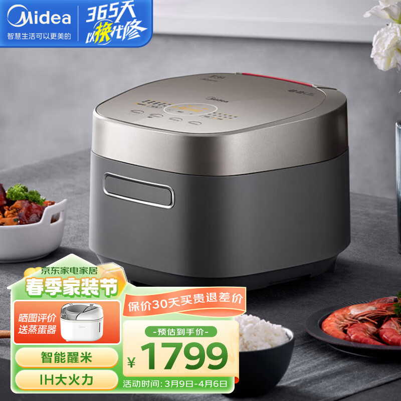 美的(Midea)智能多功能电饭煲锅双阀微IH大火力电磁发热钛金鼎釜内胆预约可拆内盖EFB4012HL(线下同款)价格:1839.00元!