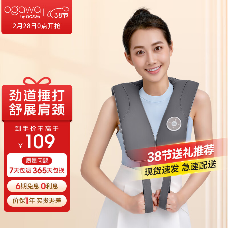 奥佳华(OGAWA)颈椎按摩器肩颈部按摩仪腰背脖子按摩器家用捶背按摩仪按摩披肩OG2615摩乐捶送女友生日礼物礼盒装 高端灰价格:199.00元!