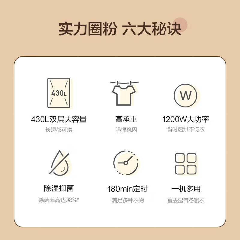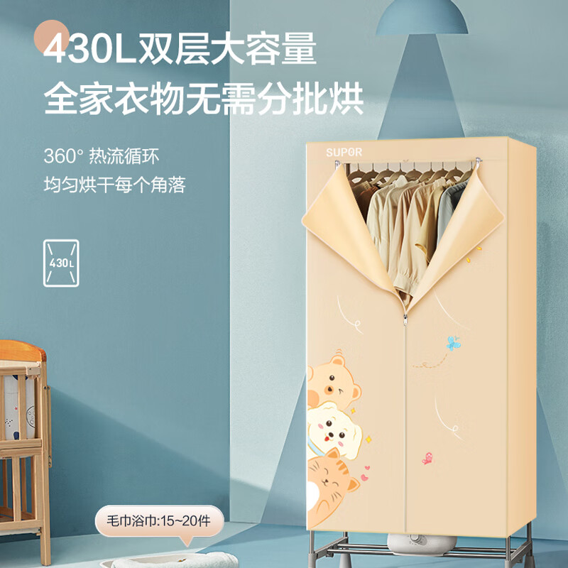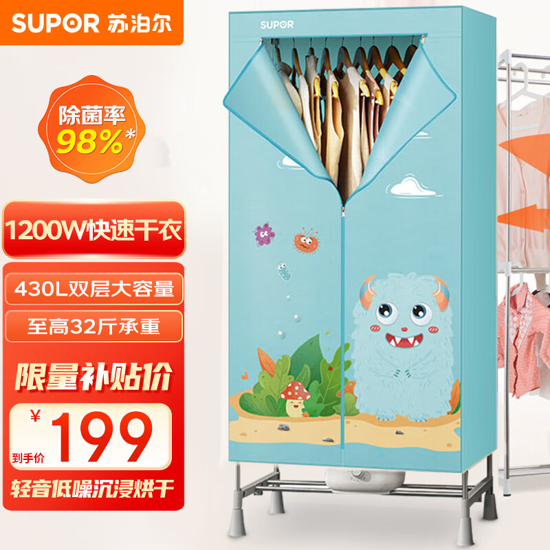 苏泊尔(SUPOR)干衣机烘干机家用双层大容量除菌柔烘速干婴儿衣物内衣暖风烘衣机风干机32斤大承重可定时烘干衣柜 浅蓝色价格:199.00元!