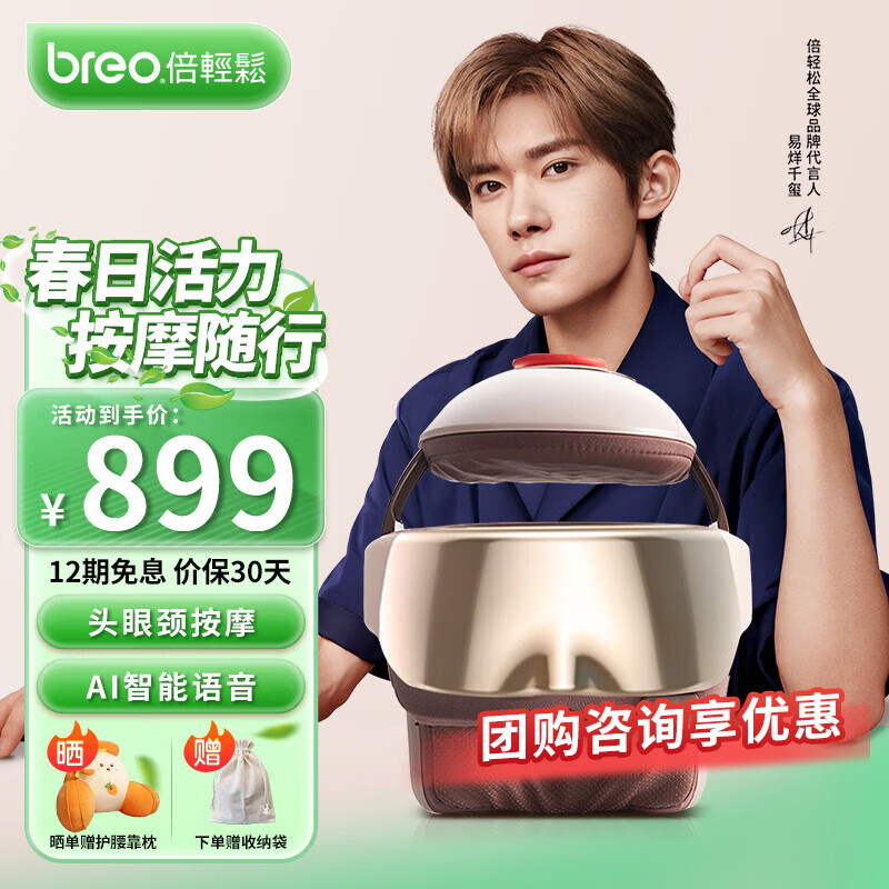 倍轻松(breo)头部按摩器按摩仪颈椎眼部颈部一体头盔睡眠仪 节日礼物送朋友生日礼品Idx2 易烊千玺代言 iDreamX2赤光金价格:1019.00元!