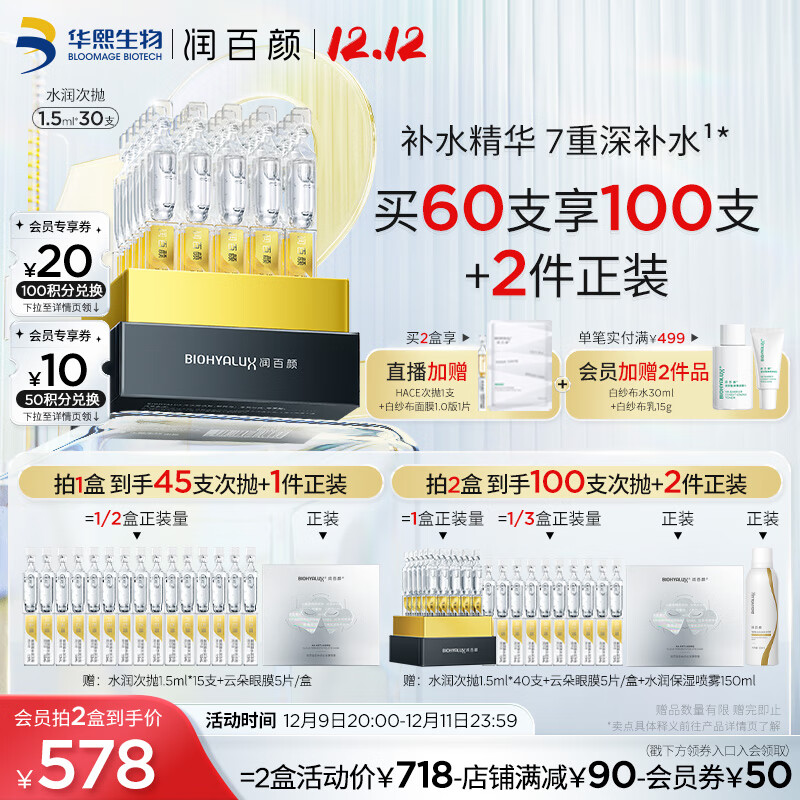 润百颜玻尿酸水润次抛精华液1.5ml*30支补水保湿化妆品护肤品礼物女价格:359.00元!