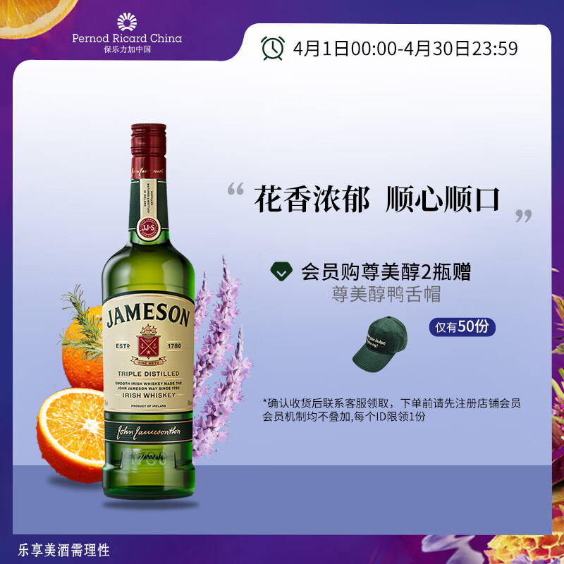 尊美醇(Jameson)爱尔兰 调和型 威士忌 洋酒 700ml价格:135.00元!
