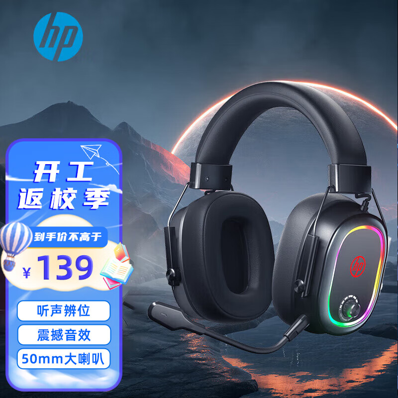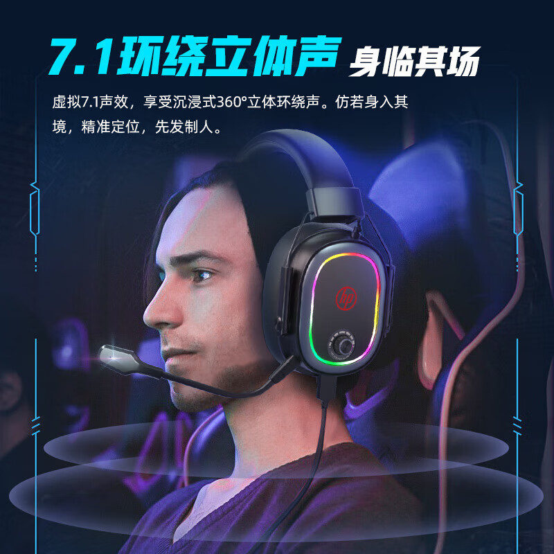 惠普(HP)H1G头戴式耳机7.1声效带麦克风游戏有线耳麦降噪笔记本台式发光吃鸡网课学习办公价格:139.00元!