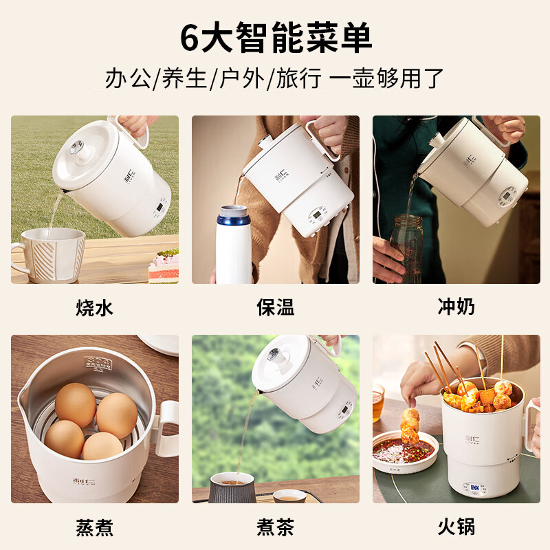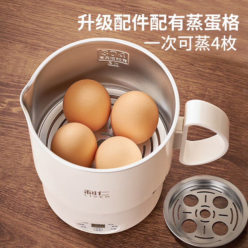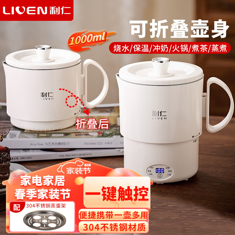 利仁电热水壶便携式折叠烧水壶不锈钢水壶烧水杯旅行出差露营水壶养生水壶【升级蒸蛋格】ZDSH-D1025价格:139.00元!