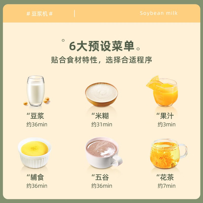 功能:预约定时,破壁磨粉,低音降噪,快速出浆