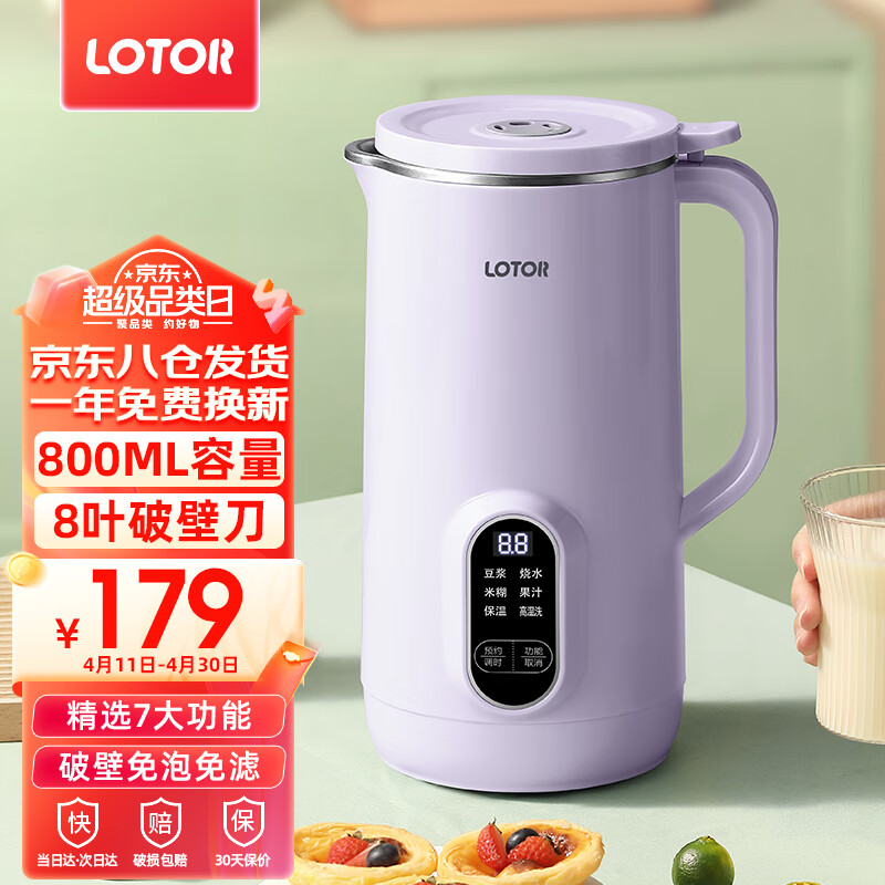 小浣熊豆浆机迷你破壁机1-2人家用小型全自动免滤免洗炸米糊榨汁杯搅拌婴儿辅食机3人4 0.8L紫色升级款价格:209.00元!