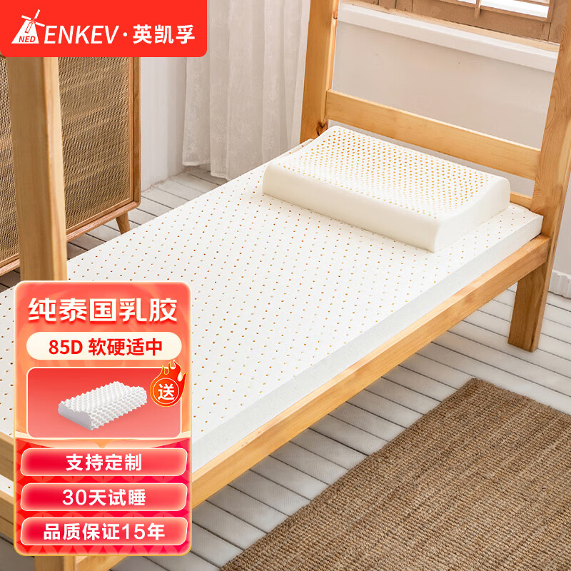 英凯孚(NEDENKEV )泰国进口天然乳胶床垫 学生宿舍单人床垫1x2米 5cm厚 85D价格:887.00元!