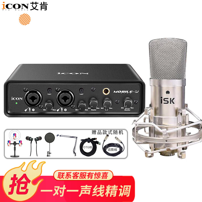 艾肯(iCON)mobileU外置声卡+BM800麦克风话筒套餐手机电脑喊麦唱歌录音主播直播设备 价格:2513.00元!