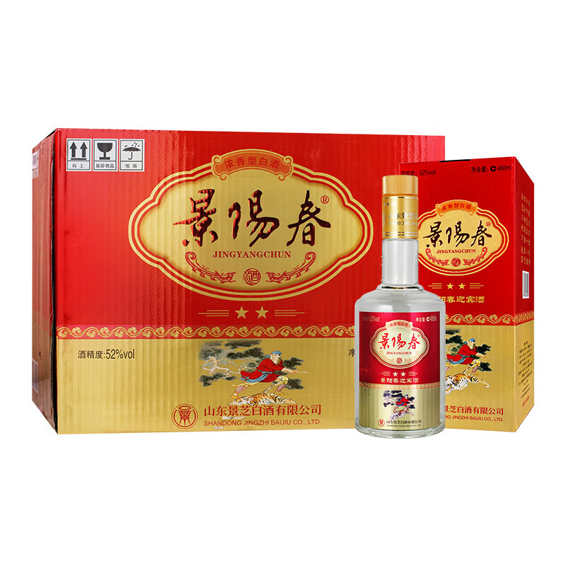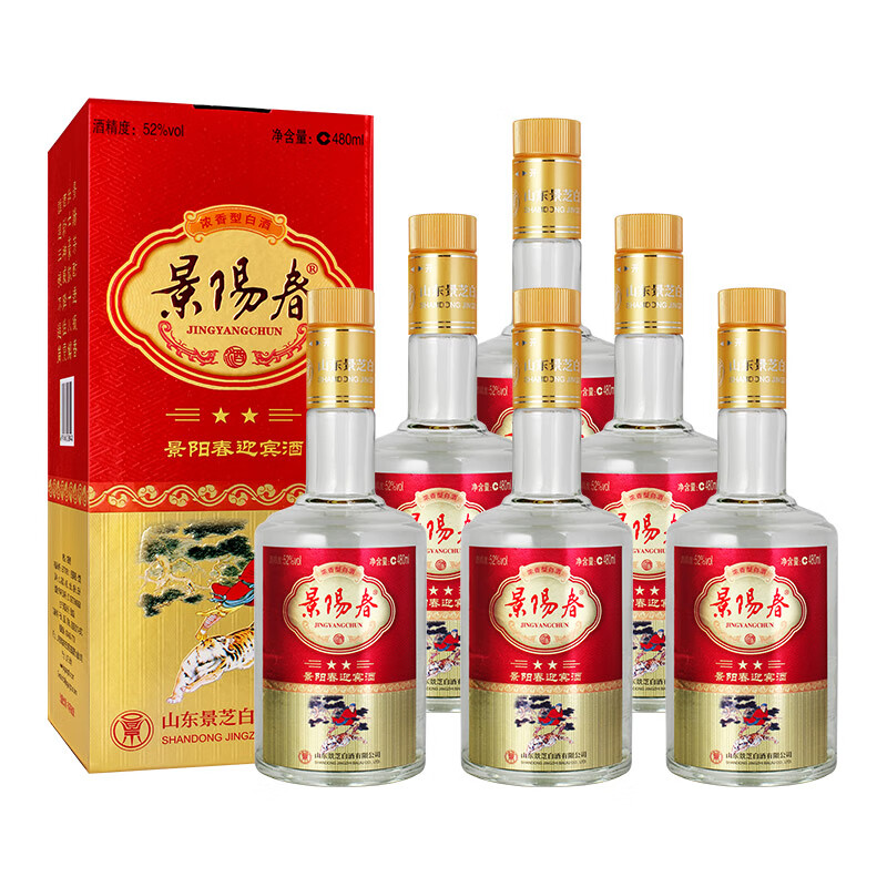 景芝 景阳春新二星迎宾 浓香型高度白酒 52度 480ml*6瓶 整箱装价格:199.00元!