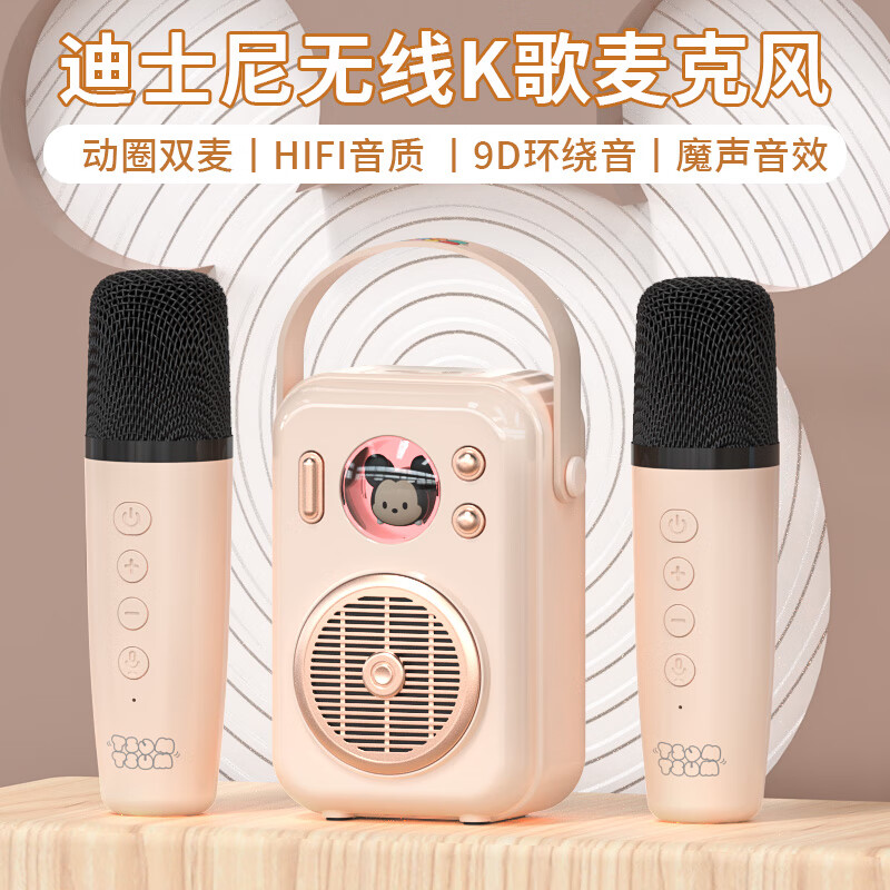 迪士尼(DISNEY)麦克风k歌音箱 话筒音响一体自带声卡 无线蓝牙k歌宝儿童家庭ktv音响套装 KM-12 米色双麦价格:169.00元!