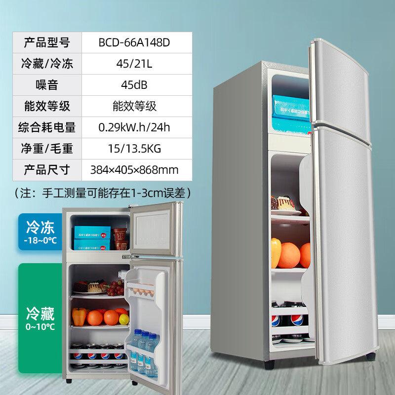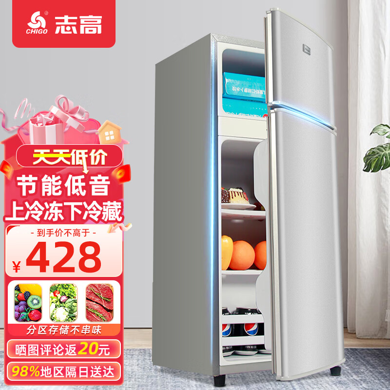 志高(CHIGO)小冰箱 双门宿舍租房小户型家用 冷藏冷冻双开门 迷你电冰箱节能保鲜小冰箱 BCD-66A148D 银色价格:458.00元!