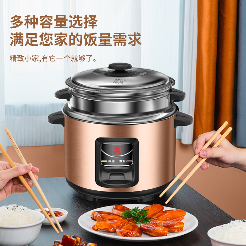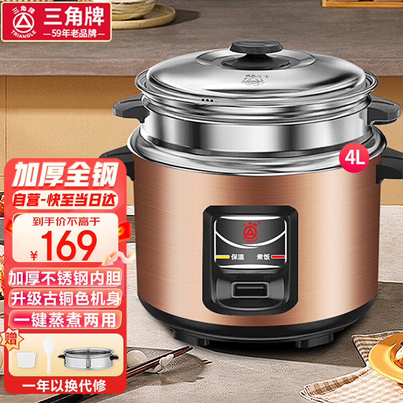 三角牌(Triangle)电饭煲老式电饭锅不锈钢家用煮饭锅米饭锅带蒸笼家庭用古铜色4L价格:169.00元!