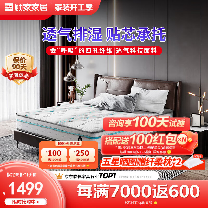 顾家家居床垫抑菌乳胶独立筒弹簧亚运纪念版活力垫M0099A1.5米价格:1499.00元!