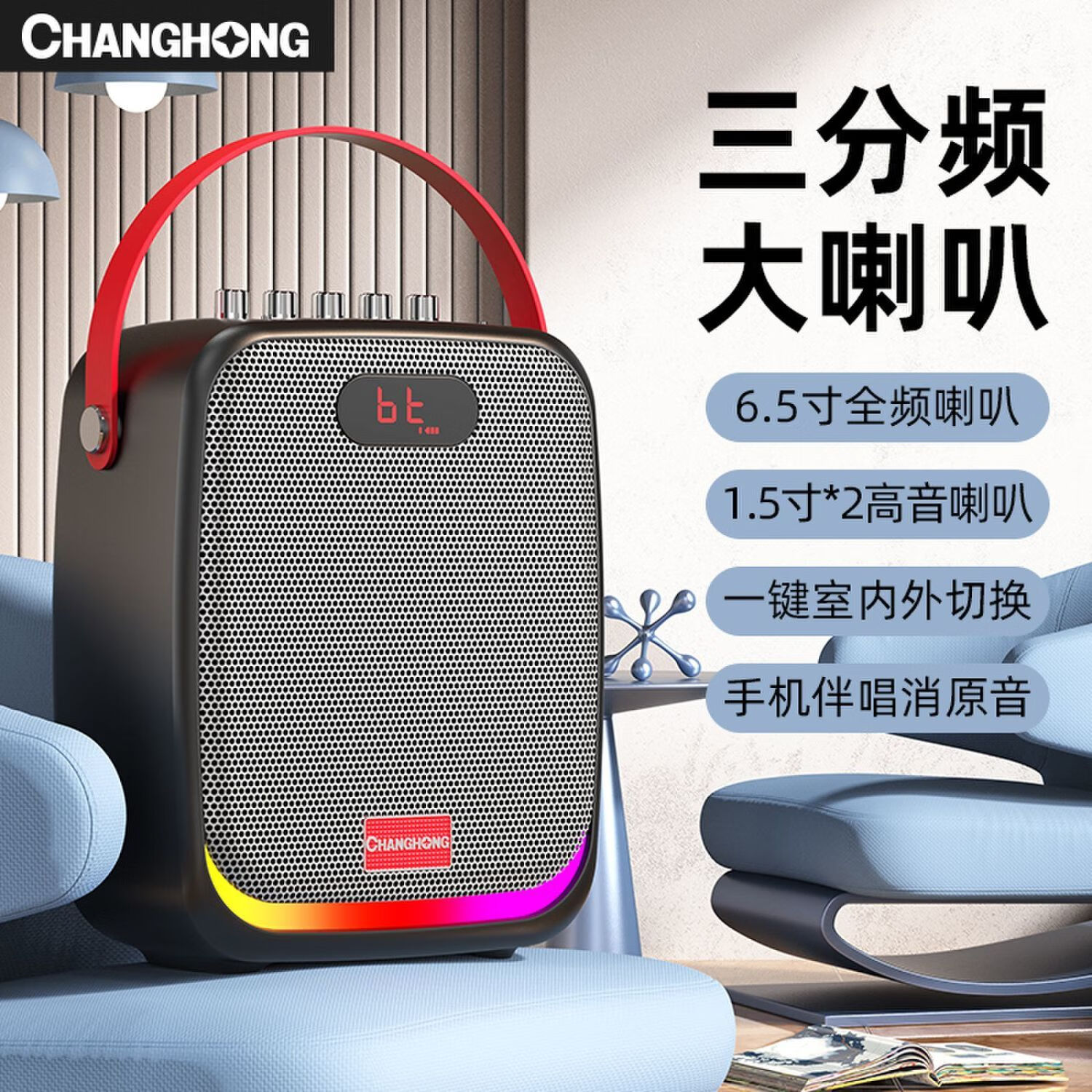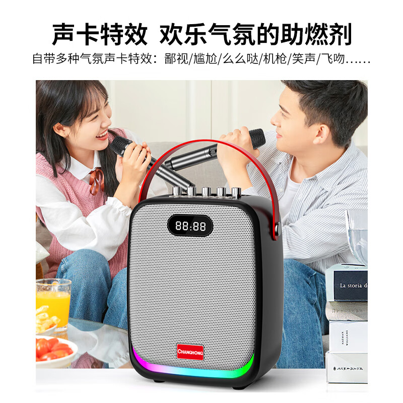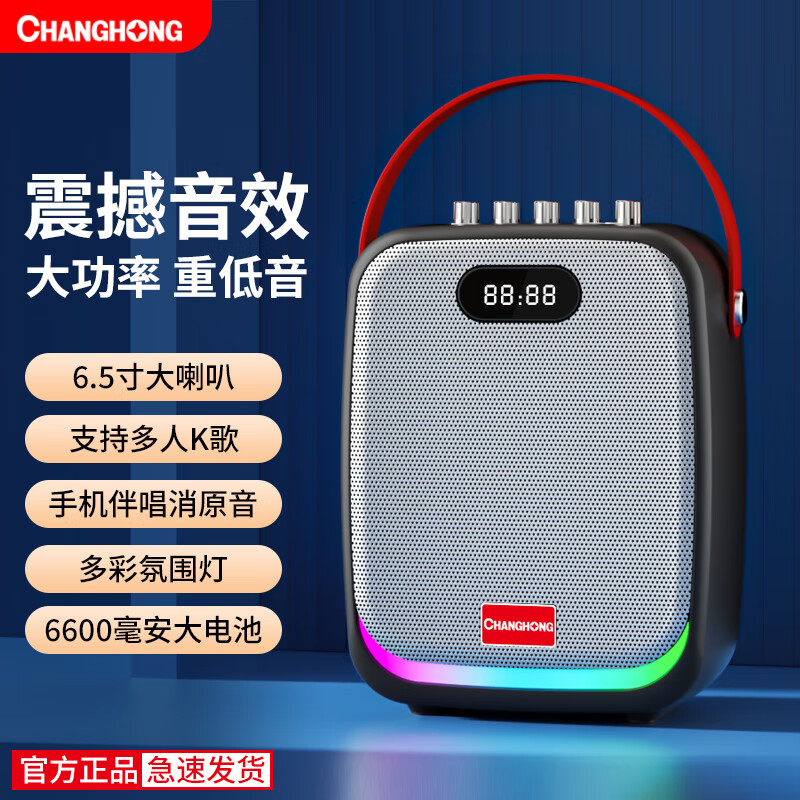 长虹(CHANGHONG)C18 无线蓝牙音响 户外便携K歌音箱户外大音量家庭ktv炫彩氛围灯手提便携式地摊摆摊喇叭价格:198.00元!