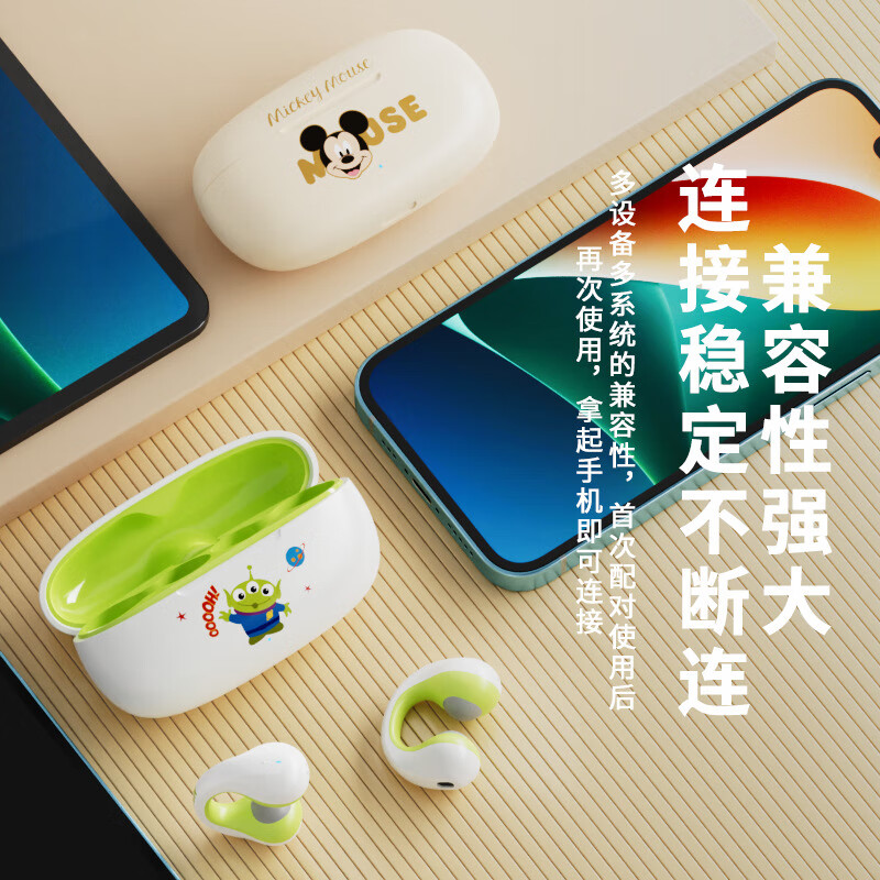 迪士尼(Disney)夹耳式真无线蓝牙耳机音乐游戏运动女生礼物颜值款 适用于苹果华为mate60/60pro小米 Y83 珊瑚红价格:109.00元!