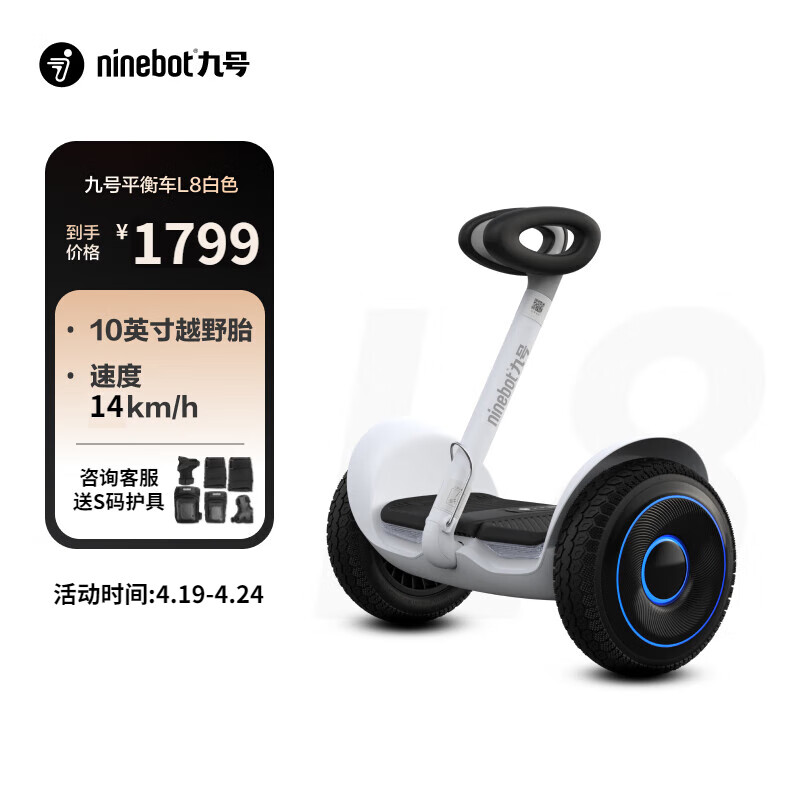 Ninebot 九号平衡车成人L8 多模式操控10英寸越野轮胎 9号电动车体感车平衡车电动白色价格:1799.00元!