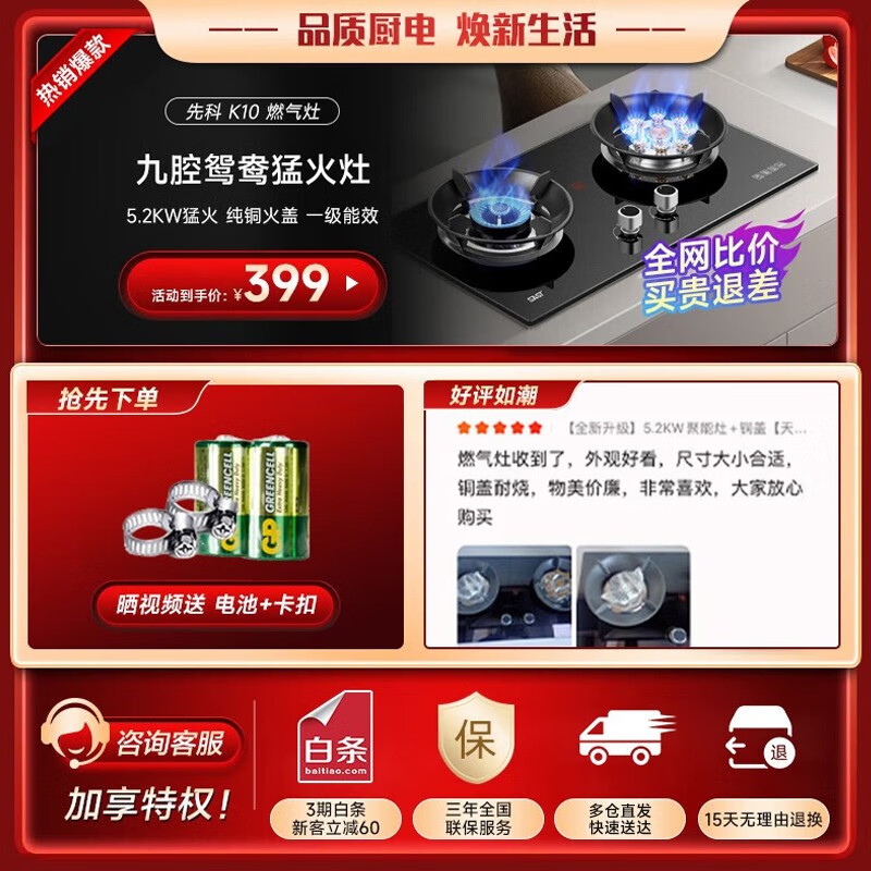 5、这么实惠的价格可以买到性价比这么高的煤气灶,可以说已经很好了,产品用着很不错,好评