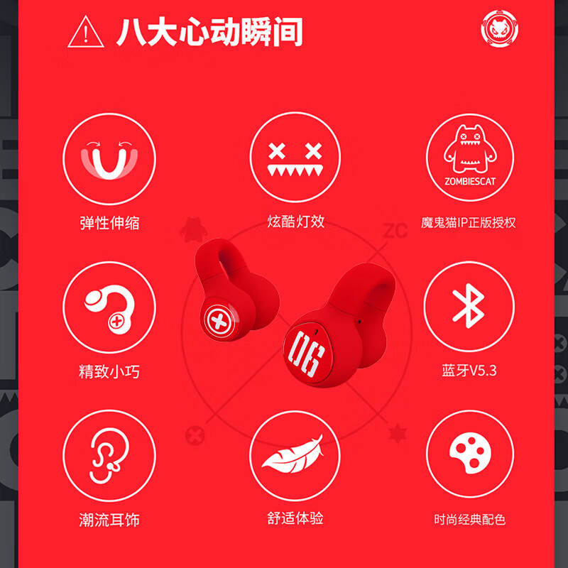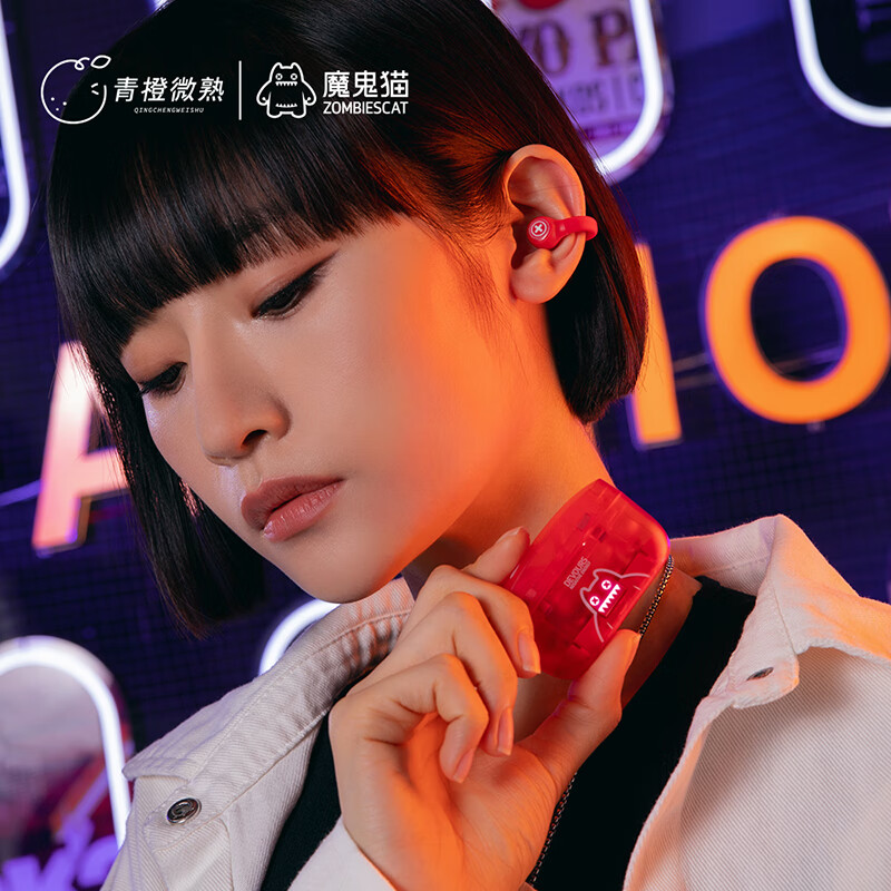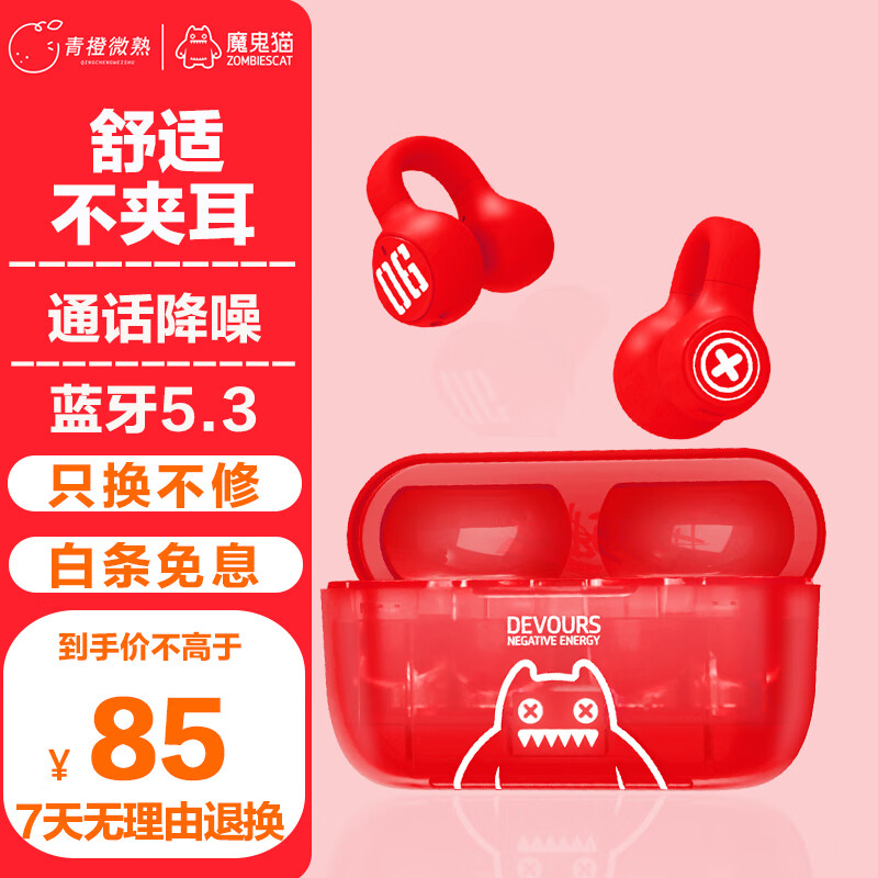 青橙微熟魔鬼猫骨传导概念真无线蓝牙耳机 不入耳运动跑步通话夹耳式耳麦通话降噪骑行耳夹式耳机 S4红色价格:109.00元!