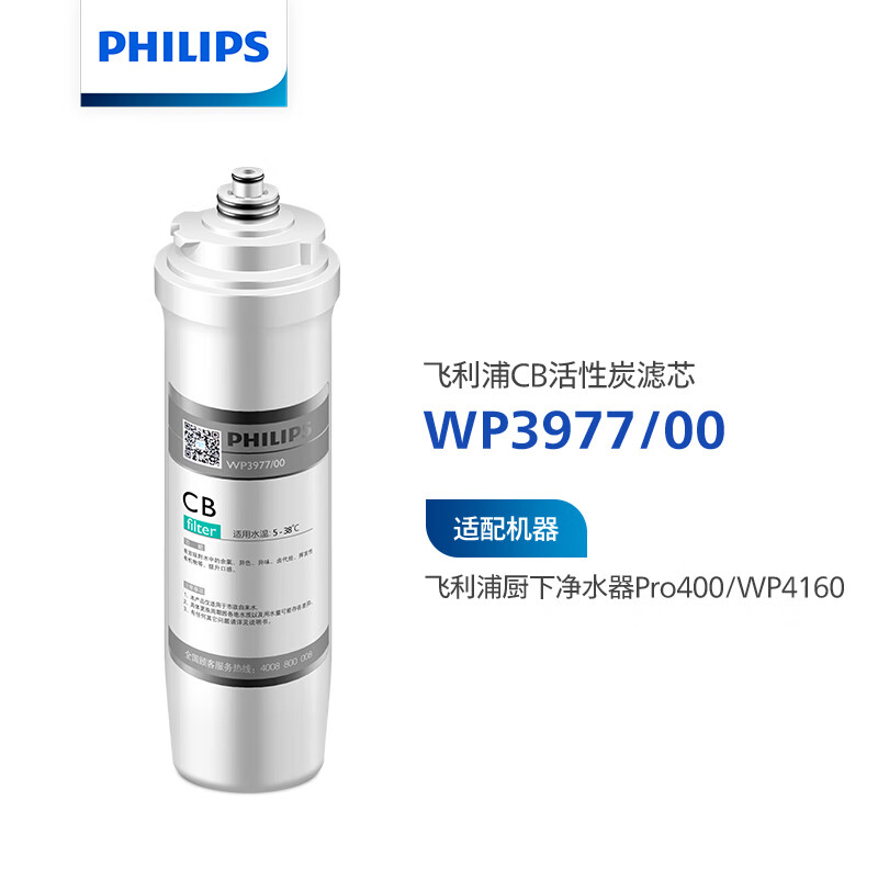 飞利浦(PHILIPS)家用净水器原装活性炭滤芯 WP3977/00(适配设备WP4160/WP4186/WP4190/PRO400/PRO500)价格:199.00元!