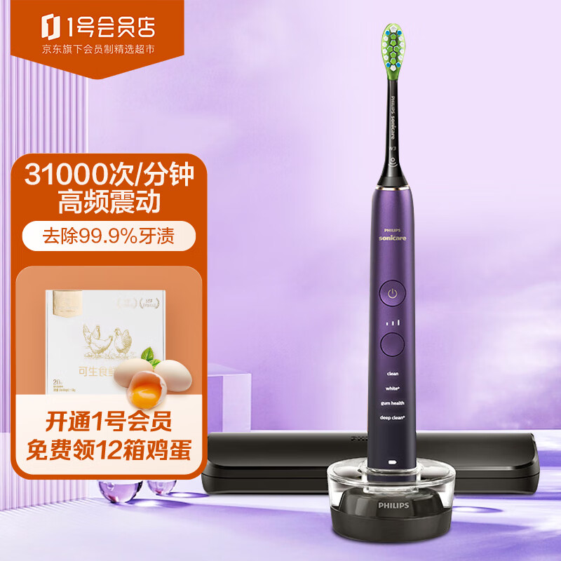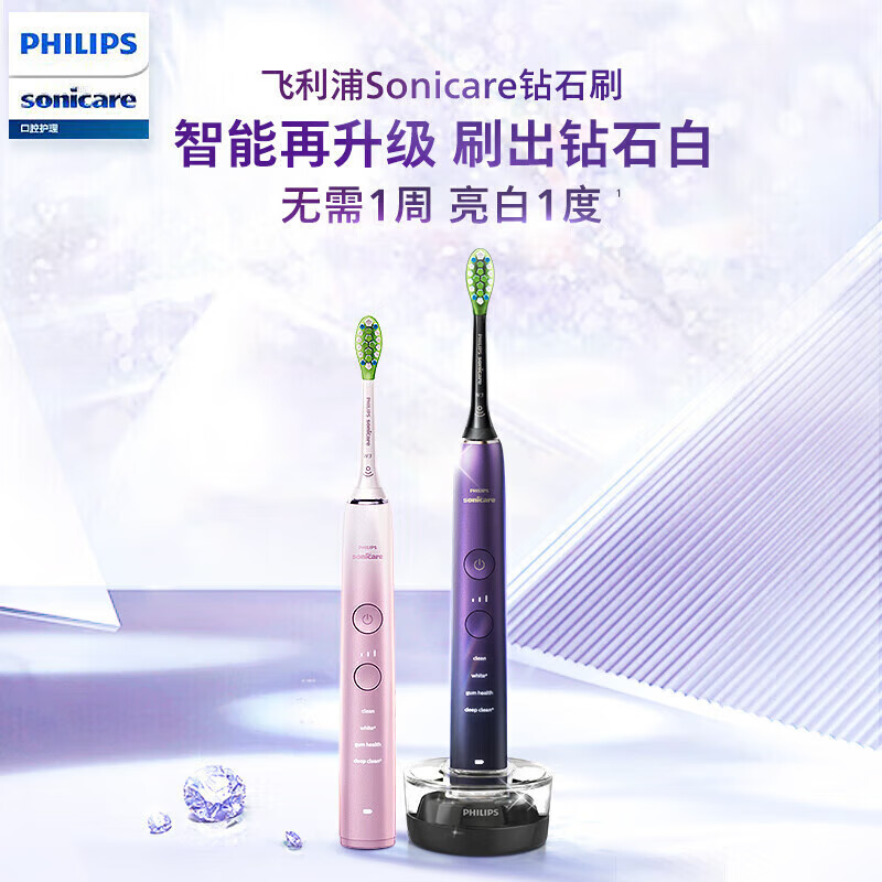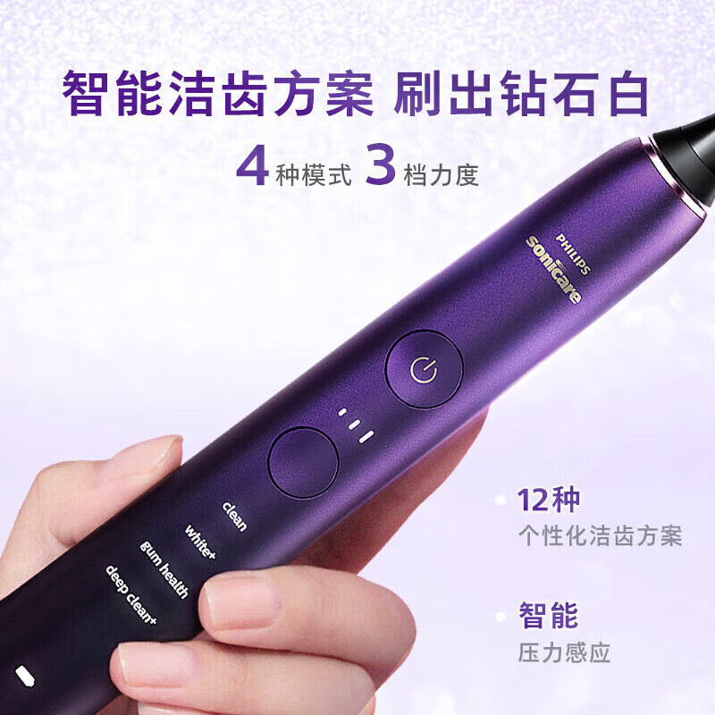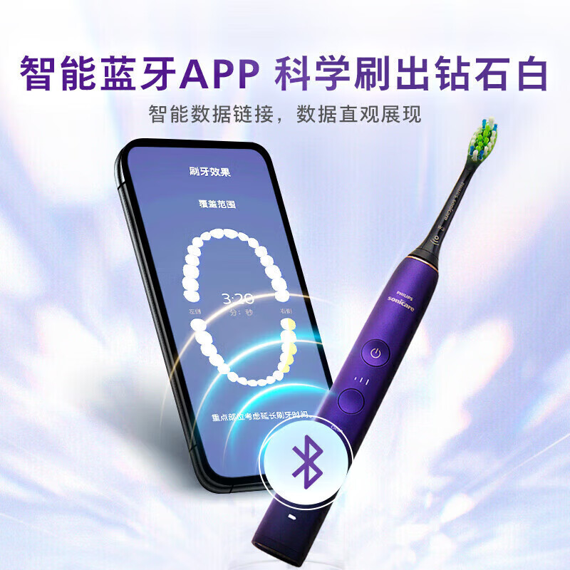 飞利浦电动牙刷钻石系列成人声波震动牙刷男友女友生日礼物智能APP可视化洁齿HX9911星辰紫价格:739.00元!