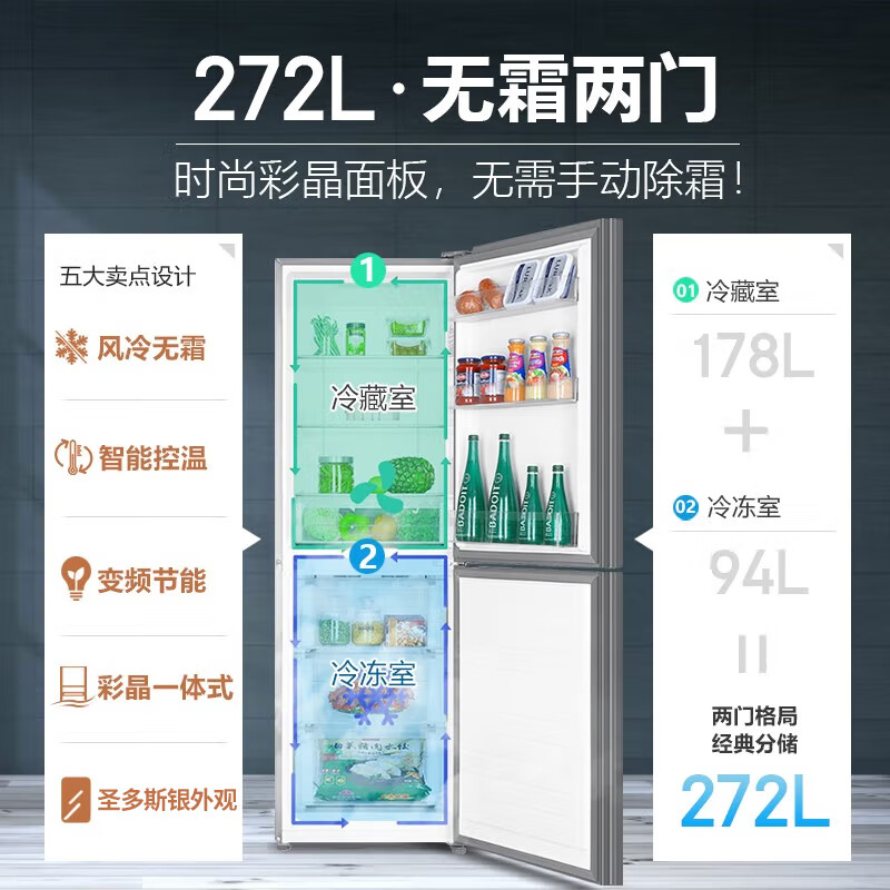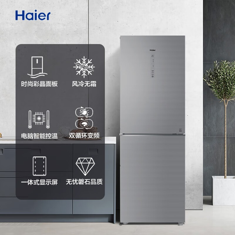 海尔(Haier)冰箱双开门272升 双循环变频 风冷无霜 一体式显示屏 彩晶玻璃面板 线下同款冰箱 BCD-272WDCI价格:2967.00元!