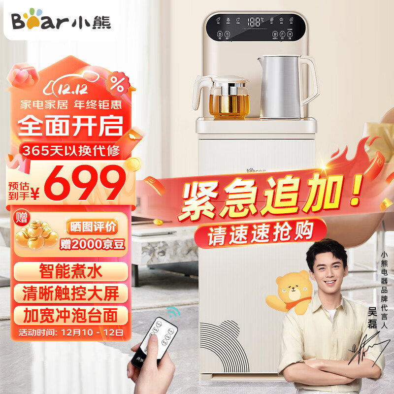 小熊(Bear)茶吧机 饮水机家用高端客厅遥控智能全自动双出水烧水一体机直饮机下置式饮水机温热款CBJ-F12L1价格:699.00元!