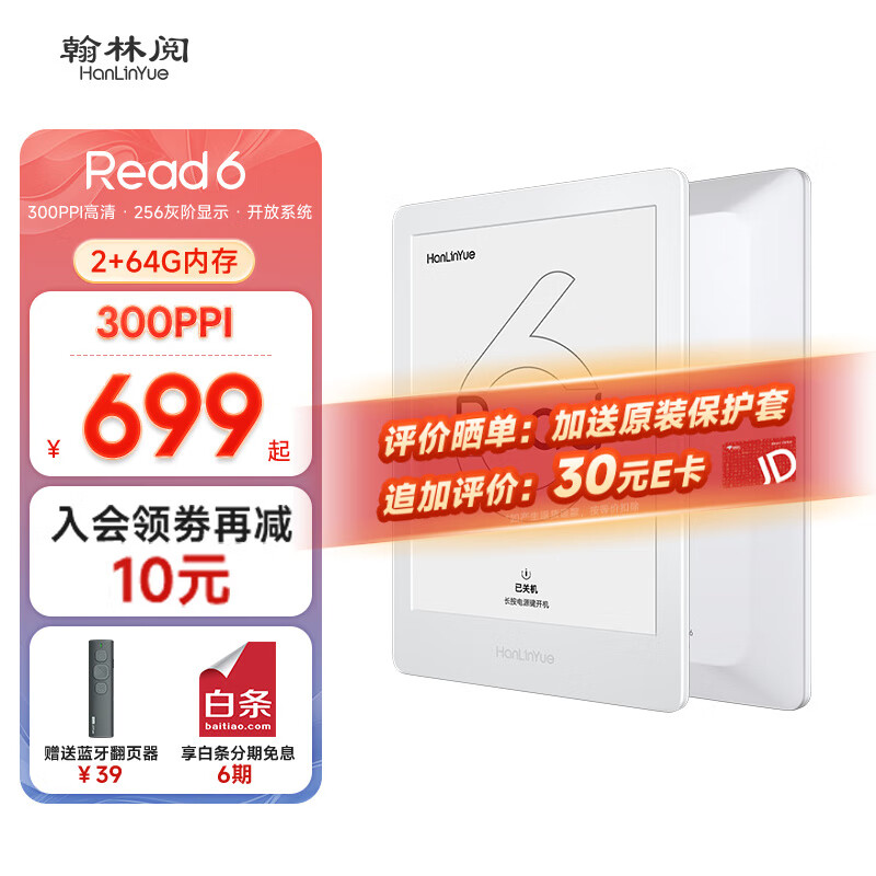 翰林阅Read6电子书阅读器6英寸64G内存300PPI墨水屏电纸书阅览器开放系统 晨暮白价格:699.00元!