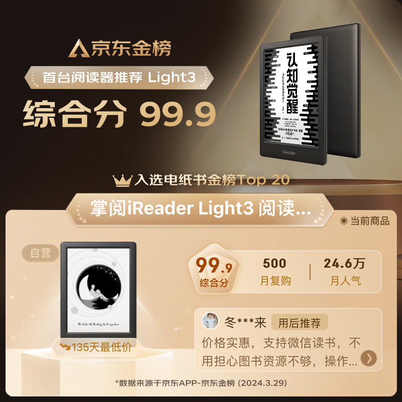 来问我掌阅Light3挺好的, 做工精细 ,物流速度快,商品包装完好无损。